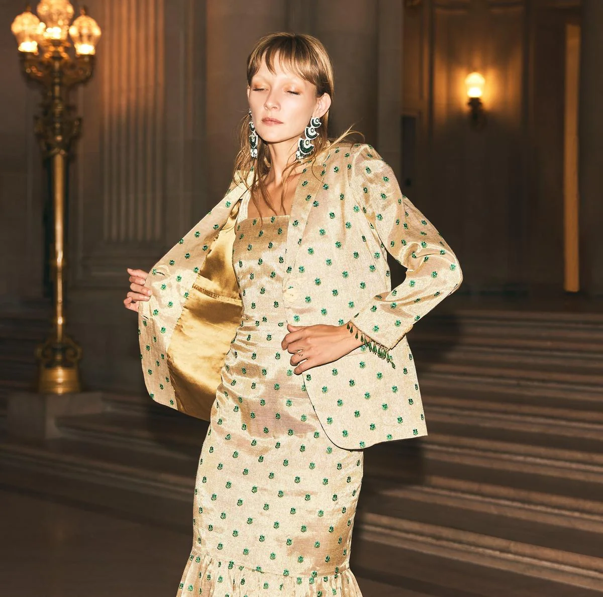 Desirae Embroidered Beaded Blazer - Light Gold/Mini Geometric Floral embroidery—